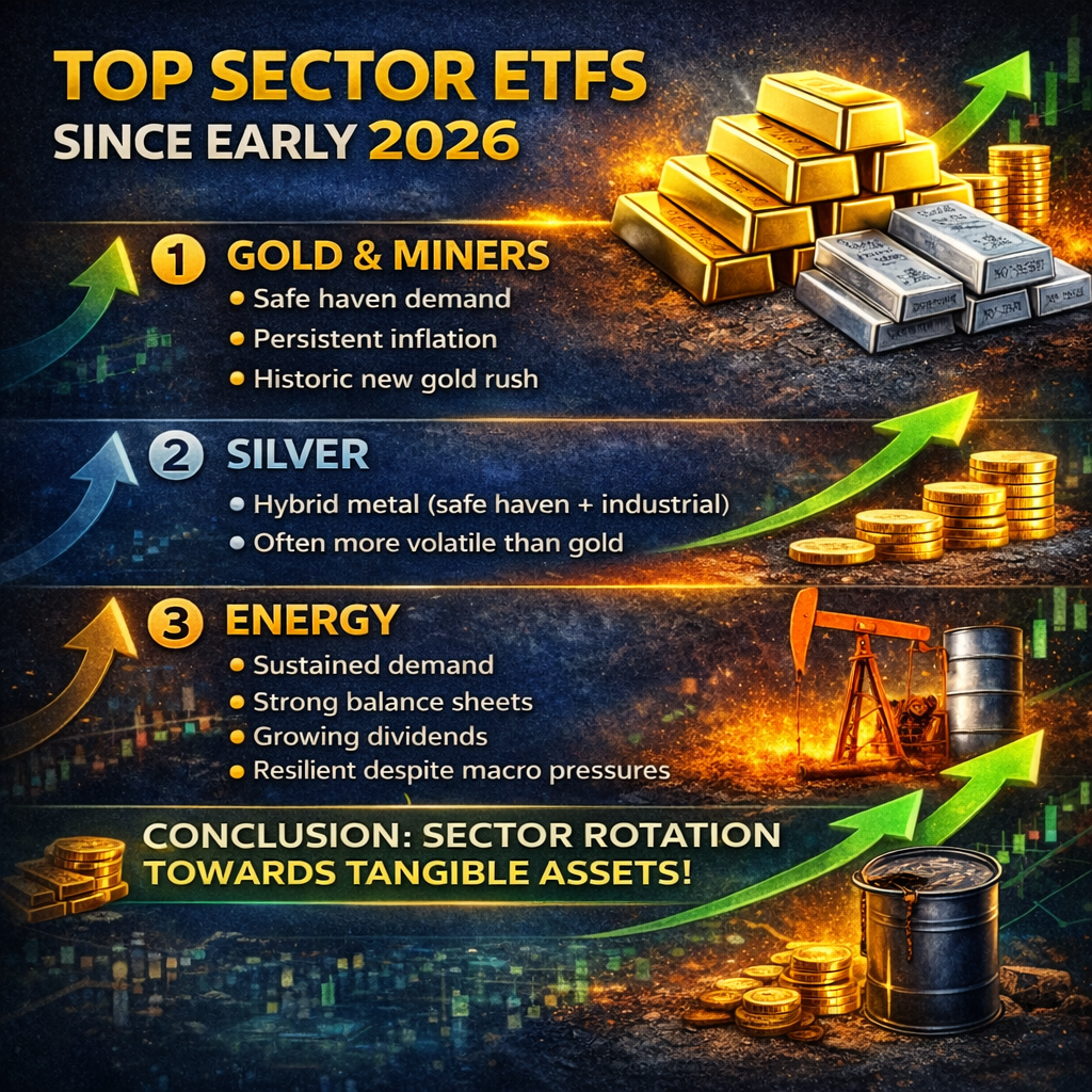 Since January 1, 2026, the global stock market has been experiencing a significant sector rotation. After several years of undisputed dominance by technology — driven by mega-caps such as Apple, Nvidia, Microsoft, and Alphabet — investors have gradually shifted their capital toward more tangible, cyclical, or defensive sectors.
