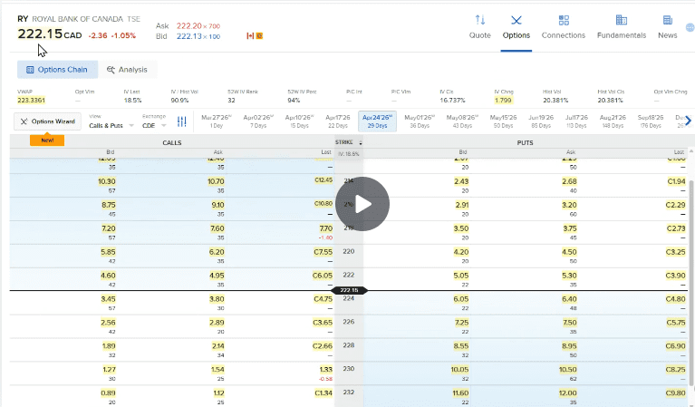 RY listed on TSX (in CAD): options not available on Wealthsimple