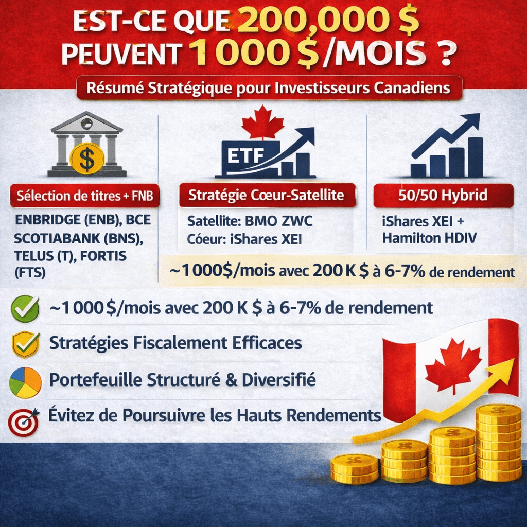 énérer 1 000 $ par mois avec 200 000 $ n’a rien d’utopique. Ce n’est pas une promesse marketing : c’est un objectif atteignable pour un investisseur discipliné.