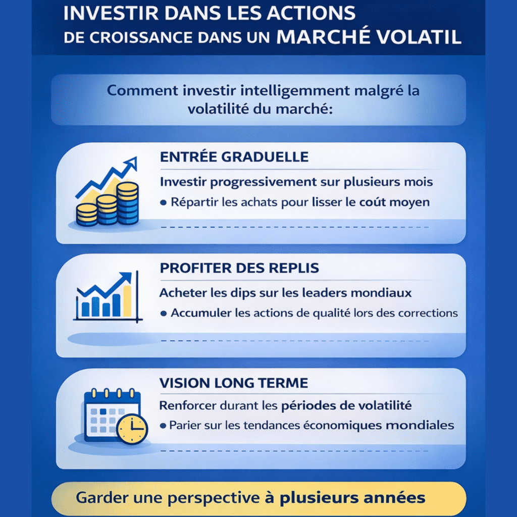 Il n’est donc pas rare de voir certaines actions technologiques reculer de 10 % à 20 % sur de courtes périodes, avant de reprendre leur trajectoire de long terme. Pour les investisseurs patients, ces périodes peuvent représenter des occasions d’investissement intéressantes.