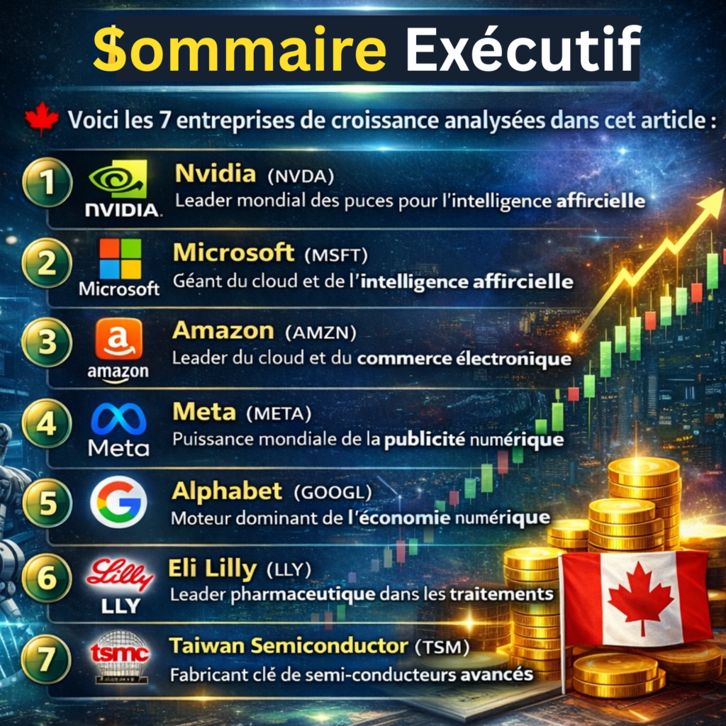 Pour les investisseurs canadiens, ces entreprises offrent une exposition directe aux grandes tendances technologiques et économiques mondiales, souvent absentes du marché canadien.