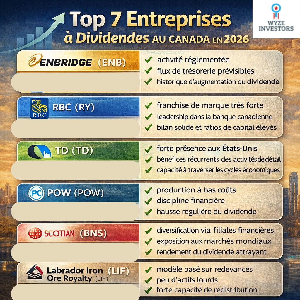 Les sept entreprises retenues — Enbridge, RBC, TD, Canadian Natural Resources, Power Corporation, Banque de Nouvelle-Écosse et Labrador Iron Ore Royalty — incarnent cette idée centrale : la qualité financière demeure la meilleure alliée de l’investisseur à long terme. Elles combinent position concurrentielle forte, capacité à générer du cash-flow et discipline dans la distribution de dividendes. Cette approche ne promet pas l’enrichissement rapide, mais elle privilégie la durabilité du revenu et la croissance progressive du capital. En 2026 comme après, construire la richesse passe avant tout par la patience, la diversification et la sélection rigoureuse d’entreprises solides.